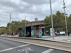 Intervención artística temporal, Parada Asalto, en la parada de tranvía de la Plaza de Aragón, como parte del Festival Asalto 2020
