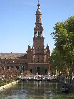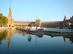 La plaza de España es un conjunto arquitectónico enclavado en el parque de María Luisa de la ciudad de Sevilla (Andalucía, España). Fue proyectada por el arquitecto Aníbal González. Se levantó entre 1914 y 1929 y es la construcción más grande de la Exposición Iberoamericana de 1929.[2][nota 1]