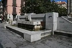 Volviendo al espacio de la plaza de Puerta de Moros un sencillo pilón de granito pulido, instalado en 1984, serviría de escenario a los primeros planos de La flor de mi secreto (1995), película de Pedro Almodóvar.[9]