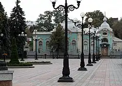 Vista de la plaza de la Constitución con la Rada Suprema (el parlamento ucraniano) a la izquierda. | ||
