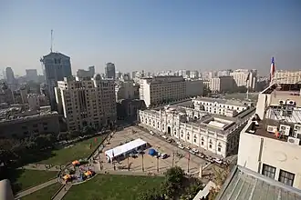 Entre los edificios que rodeaban La Moneda había algunos de importancia, como la sede de El Diario Ilustrado (1913), ocupada hoy por la Intendencia de Santiago, y el Ministerio de Fomento, convertido después en el de Obras Públicas y que fue demolido en los años 1940.[2]