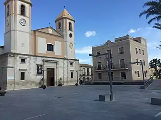 La plaza de la Constitución de Villanueva del Río Segura que se muestra es una actuación completa de la renovación de la plaza de la Constitución y su entorno, lugar donde se emplaza la iglesia de la Asunción, el edificio del ayuntamiento y el centro cultural Infanta Cristina. Con esta obra se pretendía también construir un aparcamiento subterráneo bajo la plaza para resolver los problemas del lugar. Se renovaron pavimentos, se suprimieron barreras urbanísticas y se renovó la iluminación y el arbolado dándole un toque de austeridad pero a la vez de modernidad. El proyecto comenzó en el año 2005, llevándose a cabo también durante el 2006. El coste ascendió a unos 482 997 85 €, impuestos incluidos. El proyecto está compuesto por los siguientes documentos: Memoria descriptiva y constructiva, anejos diversos, Pliego de Condiciones, Planos de Mediciones y proyectos. El estudio de Seguridad y Salud que acompaña al proyecto fue elaborado por el Ingeniero Técnico de Obras Públicas D. Eduardo Garrido Manresa, de la Oficina Técnica Municipal siendo el presupuesto de ejecución material del mismo de 10 409,45 € y el presupuesto de ejecución por contrata de 14 489,95 €