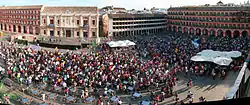 "(...) lo que allí se ve de notable es la plaza mayor, cerrada por casas hermosas semejantes a las de la Plaza de Madrid sostenidas de pórticos y de arcadas donde están establecidos los más ricos mercaderes de la ciudad y en los días de las grandes fiestas del año, se dan corridas de toros, como vivimos en Madrid. Esta plaza está en uno de los extremos de la ciudad (...)"A. Jouvin (siglo XVII)