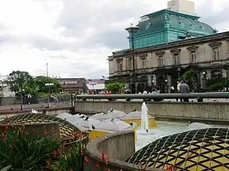 Vista del costado norte del Teatro Nacional desde la fuente-lucernario | ||