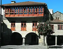 En un lateral de la plaza haciendo esquina con la calle Soportales se encuentra una casa asoportalada del siglo XVI de planta baja y dos pisos. Destaca por su fachada de piedra, su galería con carpintería roja, un escudo de armas, una chimenea visible y una escalera ornamentada, elementos típicos de la arquitectura gallega tradicional. Esta vivienda se ha hecho internacionalmente reconocible gracias a su aparición en la miniserie de Netflix El jardinero, donde es el hogar del personaje de Violeta, interpretado por Catalina Sopelana. La serie, rodada en distintos puntos del centro histórico, utiliza esta casa como escenario clave y recurrente a lo largo de sus seis episodios.[17]