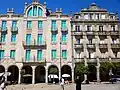 El edificio modernista del número 9, más al norte, fue construido en los años 1920.[21] Tiene una planta baja con arcos de doble altura y cuatro pisos, rematados por un pequeño frontón central con decoración geométrica. Esta decoración también está presente en los laterales de las puertas balconeras y, sobre todo, bajo los balcones del primer piso. El edificio destaca por el balcón de piedra en cada una de las cuatro ventanas francesas de cada planta,[18] que tienen vidrieras rojas, verdes y azules en armonía cromática con las de la iglesia de San Francisco. El edificio, que tiene dos puertas de acceso desde la plaza, con dos tramos diferentes de escaleras para permitir el acceso independiente a los dos pisos de cada planta, fue completamente renovado por el arquitecto Mauro Lomba en 2022.[22][23]