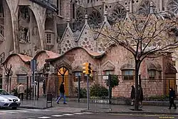 En la esquina Cerdeña-Mallorca se ubican las Escuelas de la Sagrada Familia. Este edificio fue construido en 1909 como escuela provisional para los hijos de los obreros que trabajaban en el templo. Originalmente ubicadas donde hoy se levanta la fachada de la Gloria -calle Mallorca- en 2002 fueron trasladadas a su actual emplazamiento, en un proyecto de reconstrucción dirigido por Mariona Bonet. Actualmente las escuelas albergan una exposición permanente sobre la arquitectura gaudiniana y una reproducción del desaparecido obrador del arquitecto. Dicho obrador se ubicaba, precisamente, en el otro extremo de la fachada de la Pasión (esquina Cerdeña-Provenza).