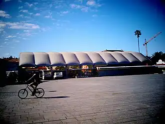 ![]() La plaza, con la sede temporal del mercado municipal | ||