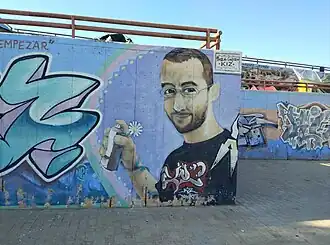 ![]() Muro de la plaza con un retrato del grafitero Kiz | ||