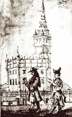 El edificio más importante en esta época era el inmenso ayuntamiento, reconstruido en 1580 en estilo manierista polaco por Antoneo de Ralia y reconstruido de nuevo entre 1620 y 1621.[6][7] La arquitectura de este edificio era similar a la de muchos otros ayuntamientos de Polonia (por ejemplo, el de Szydłowiec). Estaba adornado con áticos y cuatro torres laterales. Su torre del reloj, embellecida con una logia, estaba cubierta con un chapitel bulboso típico de la arquitectura manierista de Varsovia (véase, por ejemplo, el Castillo Real).[8]