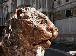 En 1722 se colocaron los dos leones de piedra que le dan el nombre. Entre 1837 y 1870 se conformó su actual aspecto con la remodelación del Palacio Patriarcal, en lo que había sido la sala de banquetes del Palacio Ducal.