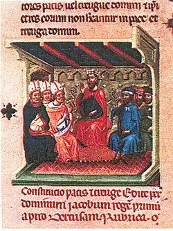 En la Corona de Aragón el fortalecimiento del poder de los reyes sobre sus vasallos no se hizo por la vía de la imposición, sino como resultado de un pacto entre rey y reino que comportaba para el rey la obligación de respetar la ley y las Cortes. Esta concepción del poder político, denominada "pactismo", acaba imponiéndose debido a que la Monarquía no pudo financiar su política de expansión mediterránea con sus posesiones patrimoniales y se vio obligada a recurrir a las Cortes para la obtención de "subsidios" extraordinarios y éstas a cambio exigieron el reconocimiento de los privilegios y fueros de los estamentos allí representados. Un momento clave fue 1283 cuando el rey de Aragón y conde de Barcelona Pedro III, agobiado económica y políticamente, tras la anexión de Sicilia, concedió privilegios generales o constituciones por los que dotaba a sus Estados de unos ordenamientos jurídicos escritos que los monarcas no podían vulnerar.[89][90][91]