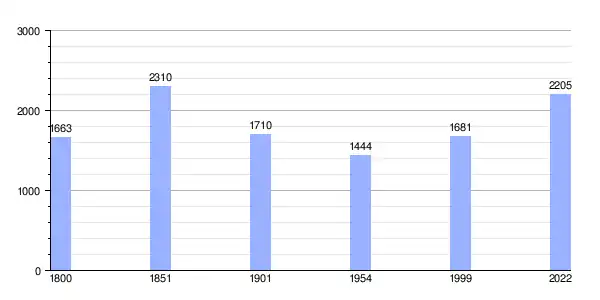 | Gráfica de evolución demográfica de Pluduno entre 1800 y 2022 |