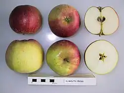 - ↑ a b c d e La manzana 'Plymouth Cross' en el "National fruit collection.org.uk". Consultado el 25 de enero de 2021.