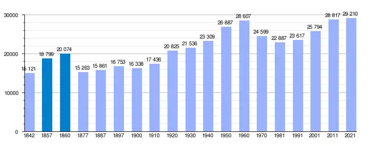 | Gráfica de evolución demográfica de Carmona[3] entre 1842 y 2021 |