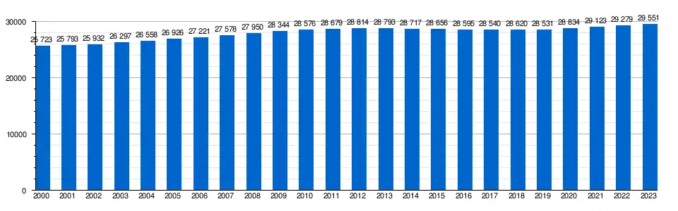 | Gráfica de evolución demográfica de Carmona[4] entre 2000 y 2023 |