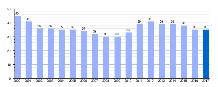 | Gráfica de evolución demográfica de Pobladura de Somoza entre 2000 y 2017 |