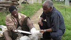 - ↑ McCarthy, James S.; Sikorski, Catherine; Ashine, Meskele; Zeleke, Zewdie; Davey, Gail (2010). «Effectiveness of a Simple Lymphoedema Treatment Regimen in Podoconiosis Management in Southern Ethiopia: One Year Follow-Up». PLoS Neglected Tropical Diseases 4 (11): e902. ISSN 1935-2735. doi:10.1371/journal.pntd.0000902.