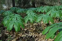 ![]() La planta medicinal Podophyllum peltatum. | ||