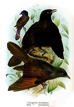 - ↑ BirdLife International (2016). «Poeoptera kenricki». Lista Roja de especies amenazadas de la UICN 2018.1 (en inglés). ISSN 2307-8235. Consultado el 26 de noviembre de 2018.