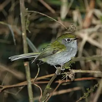 - ↑ Fitzpatrick, J.W. (2004). Genera Phylloscartes and Pogonotriccus. Pp. 298-305 in: del Hoyo, J., A. Elliott, & D. A. Christie. eds (2004), Handbook of the Birds of the World. Vol. 9. Cotigas to Pittas and Wagtails. Lynx Edicions, Barcelona. ISBN 84-87334-69-5