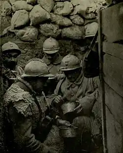 La imagen del soldado barbudo francés obstinado fue ampliamente utilizada como propaganda y en monumentos de guerra.[4] El sufrimiento y sacrificio de los poilus quedó grabado en el imaginario colectivo de varias generaciones de franceses. Por la batalla de Verdún (febrero-diciembre 1916) pasaron casi dos millones y medio de soldados franceses cuyo sacrificio y determinación ayudó al éxito francés. El día a día en las trincheras fue un auténtico infierno para los combatientes. Los piojos y ratas eran los dueños de las trincheras. Si ya vivir entre fango, frío y suciedad unido a la mala alimentación era duro lo peor llegaba cuando el poilu entraba en combate. Tener que luchar sobre cadáveres y el olor de la muerte impregnándolo todo llevaban al límite la resistencia física y mental de los poilus. No era raro ver asomar del barro restos humanos, pedazos de soldados franceses o alemanes destrozados por la artillería. Muchos poilus desaparecieron, víctimas de la artillería, y sus cuerpos nunca fueron encontrados. El horror de los combates, la angustia, el agotamiento y la desesperanza de esos soldados franceses durante cuatro años en las trincheras son inimaginables. El estereotipo del Poilu era de plena valentía y resistencia, pero no siempre de obediencia incondicional. En la desastrosa ofensiva del Camino de las Damas de 1917 comandada por el general Robert Nivelle, se decía que habían entrado en tierra de nadie como corderos a un matadero. La masacre de millares de efectivos franceses produjo amotinamientos generalizado que pretendía frenar el horror de la costosa ofensiva. Unos 30.000 soldados franceses amotinados llevaron a cabo una grève des attaques. Los oficiales trataron de frenarles a base de castigos y condenas a muerte. 3.427 soldados fueron castigados, 554 con la pena de muerte y de ellos 57 fueron finalmente fusilados.