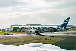 El 25 de junio de 2023, All Nippon Airways presentó un Boeing 777-300ER (JA784A) con una imagen de Pokémon pintada llamado «Eevee Jet NH». Operará en rutas de vuelos de larga distancia de EE. UU. y Londres desde su base en el aeropuerto Haneda de Tokio.[25]