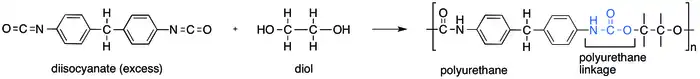 Mientras que los poliésteres dominan la investigación y la industria se enfoca en los polímeros sintéticos biodegradables, también sobresalen otras clases de polímero. Los polianhídridos son un área activa de la investigación en la administración de fármacos porque sólo se degradan desde la superficie y por lo tanto son capaces de liberar el fármaco a una velocidad constante. Los polianhídridos se pueden fabricar a través de una diversidad de métodos usados también en la síntesis de otros polímeros, incluyendo la condensación, la deshidrocloración, el acoplamiento deshidratante y la ROP. Los poliuretanos y los poli(éster amida)s se usan en biomateriales.[15] Los poliuretanos se utilizaron inicialmente por su biocompatibilidad, durabilidad, resistencia, pero más recientemente se están investigando por su biodegradabilidad. Los poliuretanos se sintetizan típicamente usando un diisocianato, un diol y un extensor de cadena de polímero. La reacción inicial se lleva a cabo entre el diisocianato y el diol, con el diisocianato en exceso para asegurar que los extremos de la nueva cadena polimérica sean grupos isocianato. Este polímero puede entonces hacerse reaccionar con un diol o una diamina para formar grupos terminales de uretano o uretano-urea, respectivamente. La elección de grupos terminales afecta las propiedades del polímero resultante. Adicionalmente, el uso de aceite vegetal y de biomasa en la formación de poliuretanos, así como la conversión de poliuretanos en polioles, es también un área activa de la investigación.[16]
