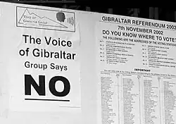 - ↑ [1] GIBRALTAR PETITIONERS TELL DECOLONIZATION COMMITTEE SOVEREIGNTY DISPUTE BETWEEN SPAIN, UK SHOULD NOT DISPLACE RIGHT TO SELF-DETERMINATION, GA/COL/3119, 7 June 2005