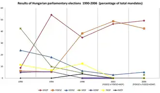 | Fidesz- Alianza de Jóvenes Demócratas, Alianza Civil Húngara (Fidesz – Magyar Polgári Szövetség) | democracia cristiana conservador | 42,03%[14] |