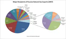 En 2006 Rusia fue el mayor productor de gas natural (22% de la producción mundial) y también el mayor exportador (22.9% de las exportaciones mundiales de gas natural). Gasprom tiene también el monopolio de los gasoductos y el derecho exclusivo de exportación, otorgados por la Ley federal de “Exportación de Gas" del 20 de julio de 2006.[6] Gazprom también tiene el control sobre los gasoductos que salen del Asia Central controlando su acceso al mercado europeo.[7]