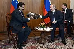 Las relaciones exteriores de Venezuela durante el gobierno de Nicolás Maduro han significado, por una parte, una continuación de la política exterior de Hugo Chávez en el acercamiento a Cuba, Nicaragua, Rusia, Irán y China,[1] y alejamiento de Israel, pero por otra parte, han estado marcadas por aislacionismo regional político para el país[2] tras las rupturas de relaciones diplomáticas con gran parte del continente americano, incluyendo Argentina,[3] Bolivia (restablecidas en 2020),[4] Brasil (restablecidas en 2022),[5] Chile,[3] Colombia (restablecidas en 2022),[6] Costa Rica,[3] El Salvador,[7] Estados Unidos,[8] Guatemala,[1] Honduras (restablecidas en 2022),[9] Panamá, Paraguay (restablecidas en 2023),[10] Perú,[3] República Dominicana[3] y Uruguay.[3] En 2017 Venezuela anunció su salida de la Organización de los Estados Americanos (OEA), durante la crisis institucional de ese año.[11]