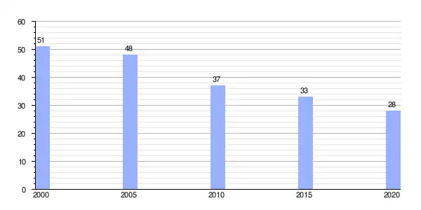| Gráfica de evolución demográfica de Pol (aldea) entre 2000 y 2020 |
