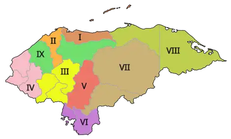 Jefatura Departamental n.º 2 Trujillo Jefatura Departamental n.º 3 Comayagua Jefatura Departamental n.º 4 Santa Rosa de Copán Jefatura Departamental n.º 5 Cortés Jefatura Departamental n.º 6 Choluteca Jefatura Departamental n.º 7 Danlí Jefatura Departamental n.º 8 Francisco Morazán Jefatura Departamental n.º 9 Puerto Lempira Jefatura Departamental n.º 10 La Esperanza Jefatura Departamental n.º 11 Roatán Jefatura Departamental n.º 12 La Paz Jefatura Departamental n.º 13 Gracias Jefatura Departamental n.º 14 Ocotepeque Jefatura Departamental n.º 15 Juticalpa Jefatura Departamental n.º 16 Santa Bárbara Jefatura Departamental n.º 17 Nacaome Jefatura Departamental n.º 18 Yoro |