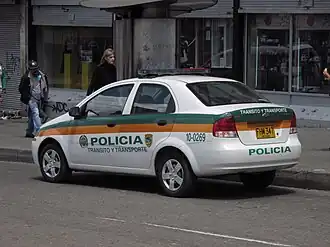 En Colombia, la única fuerza de policía, y con jurisdicción nacional, es la Policía Nacional de Colombia, la cual se define como un cuerpo armado, permanente, de naturaleza civil, a cargo de la nación, cuyo fin primordial es el mantenimiento de las condiciones necesarias para el ejercicio de los derechos y libertades públicas, y para asegurar que todos los habitantes de Colombia convivan en paz; a la policía compete la conservación del orden público interno.[3] Constitucionalmente hace parte de la Fuerza Pública, junto con las Fuerzas Militares (Ejército, Fuerza Aérea, y Armada), por tanto los delitos cometidos por los policiales en servicio activo y en relación con el mismo, son conocidos por las cortes marciales, o tribunales militares, con arreglo a las prescripciones del Código Penal Militar Colombiano; no es deliberante, no puede ejercer la función del sufragio, ni intervenir en actividades o debates de partidos o movimientos políticos. Desde 1953 depende del Ministerio de Defensa.