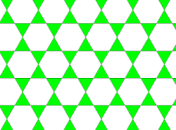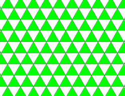 • El teselado triangular, con configuración de vértice 36 y 6 siendo par, puede considerarse cuasirregular, con configuración de vértices (3.3)6/2 = (3a.3b)3, alternando dos colores de caras triangulares.