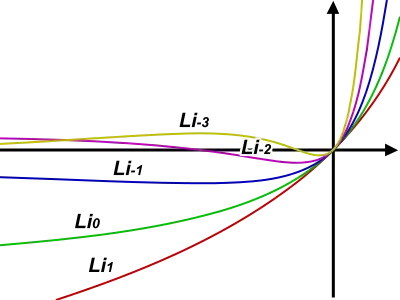 así, el dilogaritmo es una integral del logaritmo, el trilogaritmo del dilogaritmo y así continuamente. Para valores enteros negativos de s, el polilogaritmo es una función racional.
