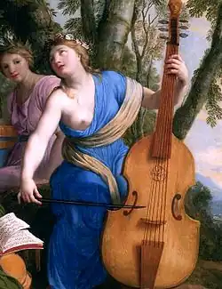 - ↑ Antonio Ruiz de Elvira: Mitología clásica, págs. 101-104. (Editorial Gredos, 2011); ISBN 84-249-0204-1. En un trabajo exhaustivo Ruiz de Elvira recopila numerosas fuentes donde cita las atribuciones individuales de cada musa. Cita como referencias, entre ellas Diodoro Sículo: Biblioteca histórica IV 7, 3-4; Cornuto, Compendio de teología griega 14; Plutarco, Cuestiones griega, IX, 14, 746d, 747a; escolio a Apolonio de Rodas, Argonáuticas III,1; cinco epigramas griegos, varios de ellos anónimos (AP IX 504 y 505); y la Antología latina, 84 y 664.