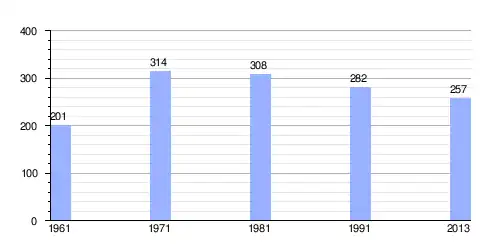 Hasta 2013 la población era de 257 habitantes,[4] con una densidad de población de 283,4 hab/km².[4]