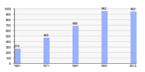 | Gráfica de evolución demográfica de Polje Ostružnica entre 1961 y 2013 |