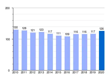 | Gráfica de evolución demográfica de Polopos entre 2010 y 2020 |