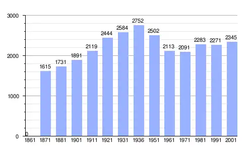 | Gráfica de evolución demográfica de Polverara entre 1861 y 2001 |