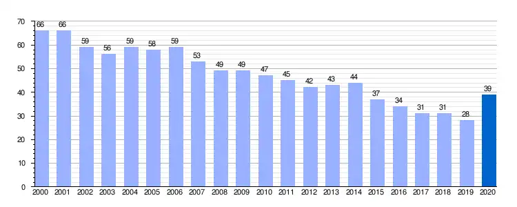 | Gráfica de evolución demográfica de Polvorosa de Valdavia entre 2000 y 2020 |