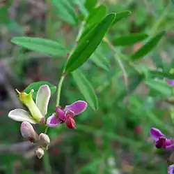 Es una hierba perenne rizomatosa o arbusto, conocido por superar los 2 metros de altura máximo, con las ramas en difusión o en crecimiento erecto. Las hojas son lineales, en forma de lanza, o estrechamente ovales, de hasta 6,5 centímetros de largo, y ampliamente espaciadas a lo largo de las ramas. La inflorescencia es una breve selección de flores que varían en color desde el blanco verdoso o amarillento a rosado. Cada una tiene dos sépalos laterales como alas, y la quilla del pétalo central se inclina con un pico corto. El fruto es una cápsula marrón aplanada.