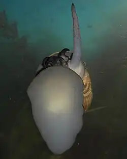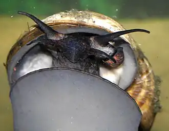 Para reducir la vulnerabilidad al ataque de aves especializadas en su predación, cuenta con una adaptación, el sifón tubular, empleado para la respiración aérea durante la inmersión, permitiendo al animal recargar su pulmón con oxígeno manteniendo su concha a una profundidad adecuada, lo que facilita que pase desapercibida.[16]
