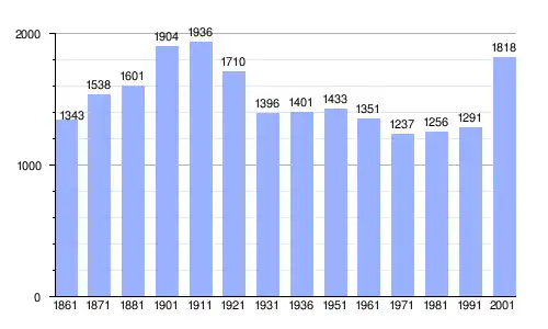 | Gráfica de evolución demográfica de Pombia entre 1861 y 2001 |