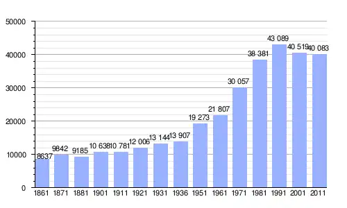 | Gráfica de evolución demográfica de Pomigliano d'Arco entre 1861 y 2011 |