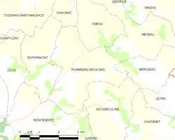 Pommiers-Moulons es una población y comuna francesa, situada en la región de Poitou-Charentes, departamento de Charente Marítimo, en el distrito de Jonzac y cantón de Montendre.