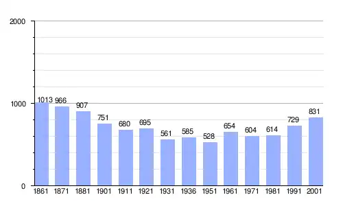 | Gráfica de evolución demográfica de Pompeiana entre 1861 y 2001 |