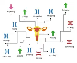 - Torcer - empujar y girar el pene con los anillos vaginales.